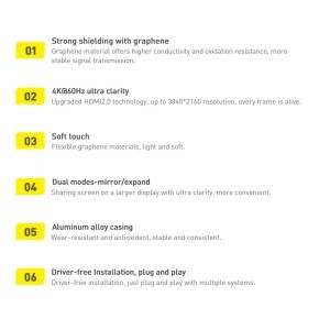 A kép és a hang automatikusan szinkronizálva van, és nem kell manuálisan beállítani. A HDMI-kábel elfeledteti a kusza audio- és videokábeleket.