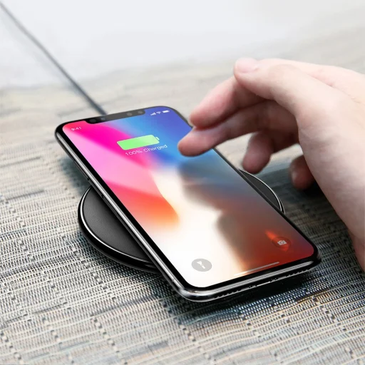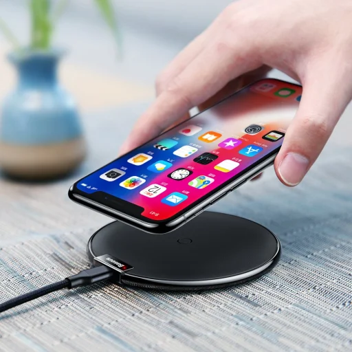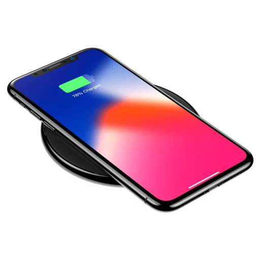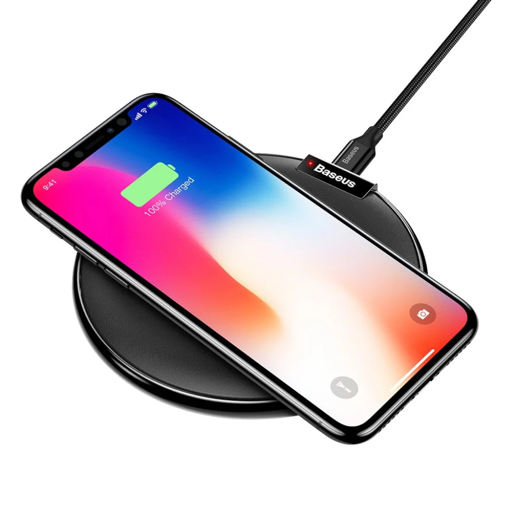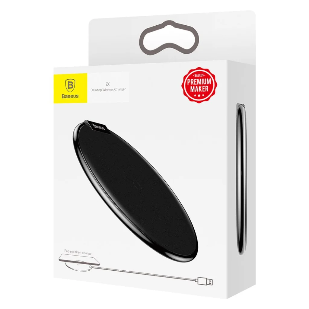 Baseus iX Elegant WXIX-01 vezeték nélküli qi töltő, gyorstöltő. A töltő csak 8mm vastag, így könnyedén hordozhatjuk is. Kiváló minőségi cink ötvözetből készült, amit puha PU bőr borít, így nem karcolódik telefonunk. A töltő biztonságilag tökéletes. A fém kulcsokat, és egyéb véletlenül rákerülő fém eszközöket felismerve nem indítja el a töltést. A töltő véd túláram, túlterhelés, túlmelegedés, túlfeszültség, rövidzárlat, elektromágneses mező stb. ellen. Töltéskor tokot is használhatunk, ami maximum 8mm vastag lehet. A beépített led jelzi számunka, amikor a telefon teljesen feltöltött.