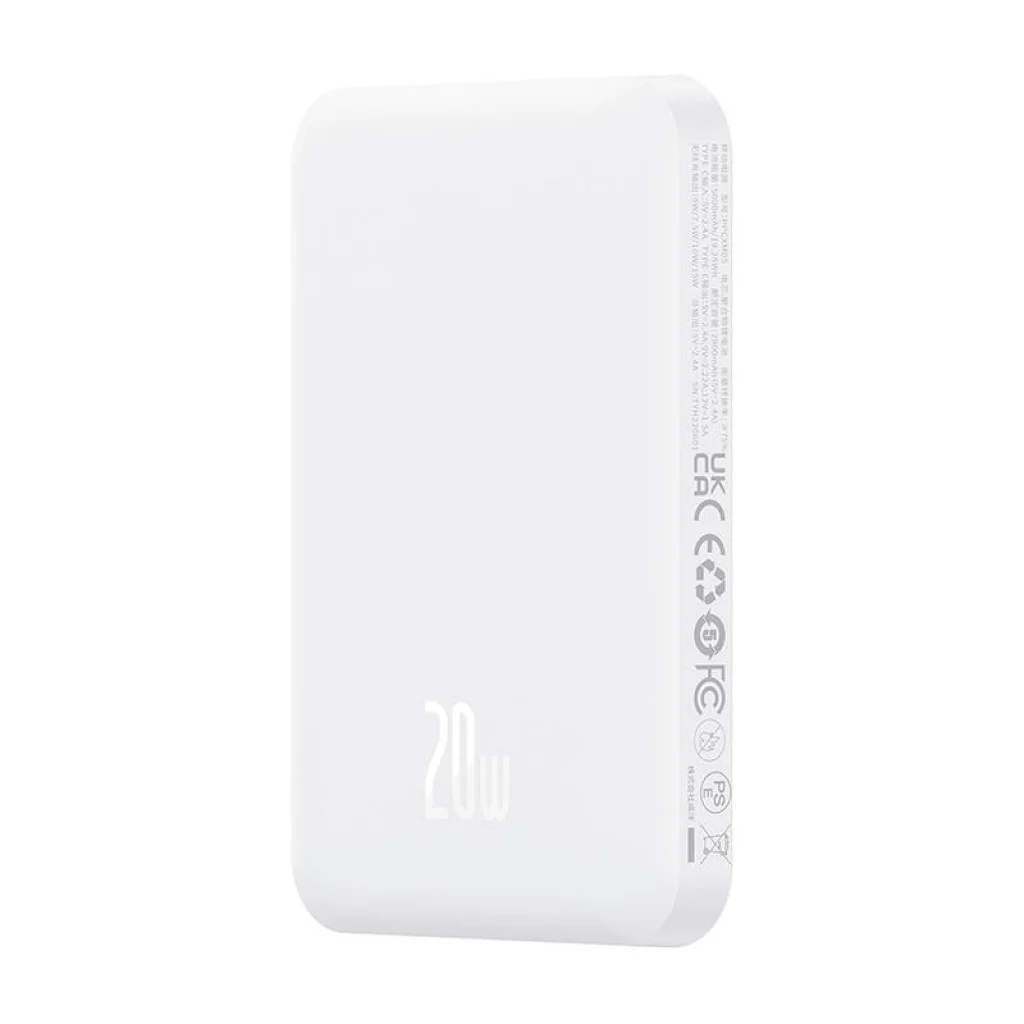 Mágneses Mini Powerbank Baseus, 5000mAh, 20W (fehér)