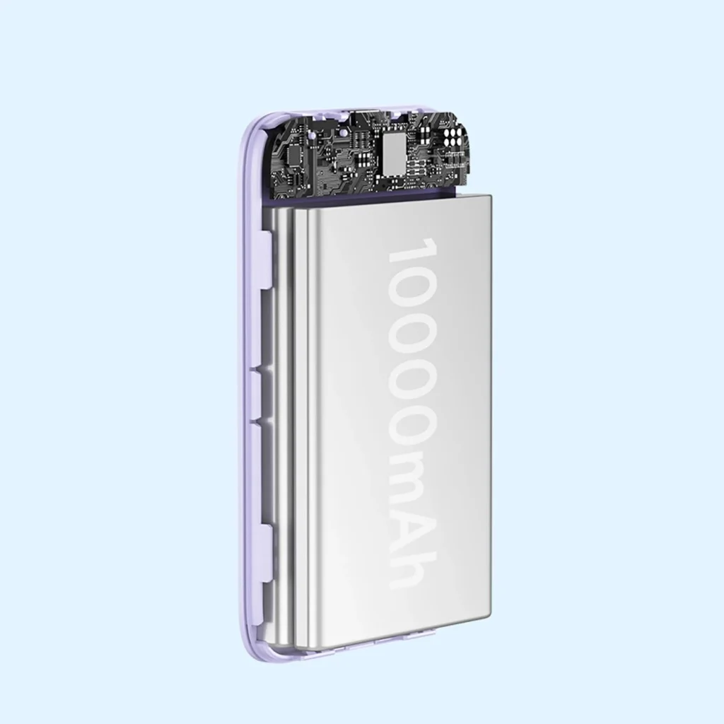 Baseus Magnetic Mini Inductive Powerbank 10000mAh 20W - lila + USB-C - USB-C kábel A Baseus Magnetic Mini powerbank lehetővé teszi, hogy gyorsan és hatékonyan feltöltsd okostelefonodat - akár otthon, akár utazás közben. A vezetékes és vezeték nélküli gyorstöltés technológiájának köszönhetően ez a powerbank minden helyzetben maximális töltési hatékonyságot biztosít. Minimalista dizájnja elegánsan illeszkedik a modern okostelefonokhoz. A kütyü elég kicsi ahhoz, hogy könnyedén elrejthesd a zsebedben vagy a táskádban. Ezen kívül intelligens funkciók, mint a telefon érintésekor automatikusan induló töltés és a töltési állapotról tájékoztató LED jelzők, rendkívül intuitívvá és kényelmessé teszik a használatát.