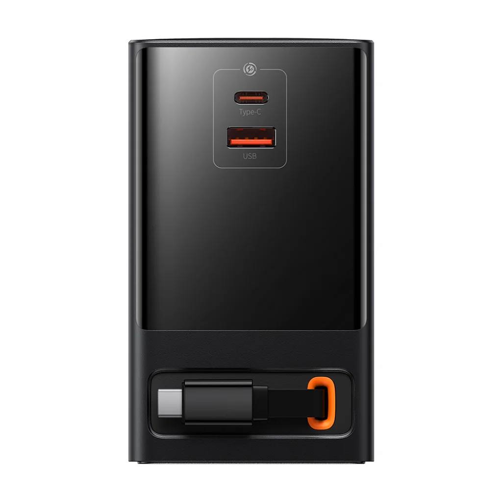 - Beépített kihúzható USB-C kábel: Egyedülálló és praktikus megoldás, amely elegánsan eltűnik az eszközben, amikor nincs rá szükség. Különösen kényelmes utazás közben, és szintén 65W-os teljesítményre képes.