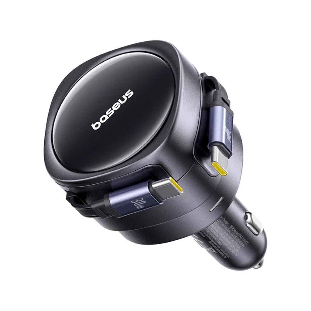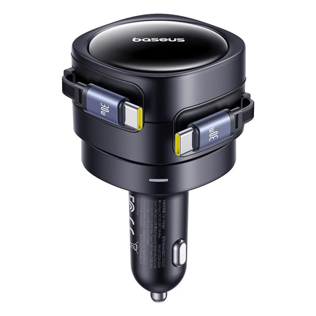 A Baseus Enjoyment Max autós töltő Kozmikus Fekete színben egy elegáns és hatékony autós töltő. Beépített C+C kábelekkel van felszerelve, 60W teljesítményt támogat, így gyors és hatékony töltést biztosít az eszközök számára utazás közben. A kompakt kialakítás megkönnyíti a használatot, a kiváló minőségű anyagok pedig garantálják a tartósságot. A töltő tökéletes okostelefonok, tabletek és más USB-C eszközök töltéséhez, megbízható és stílusos megoldást kínálva minden töltési igényre.