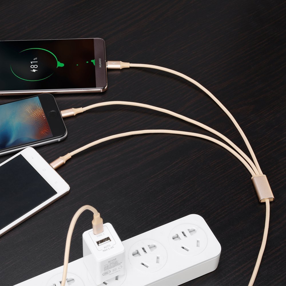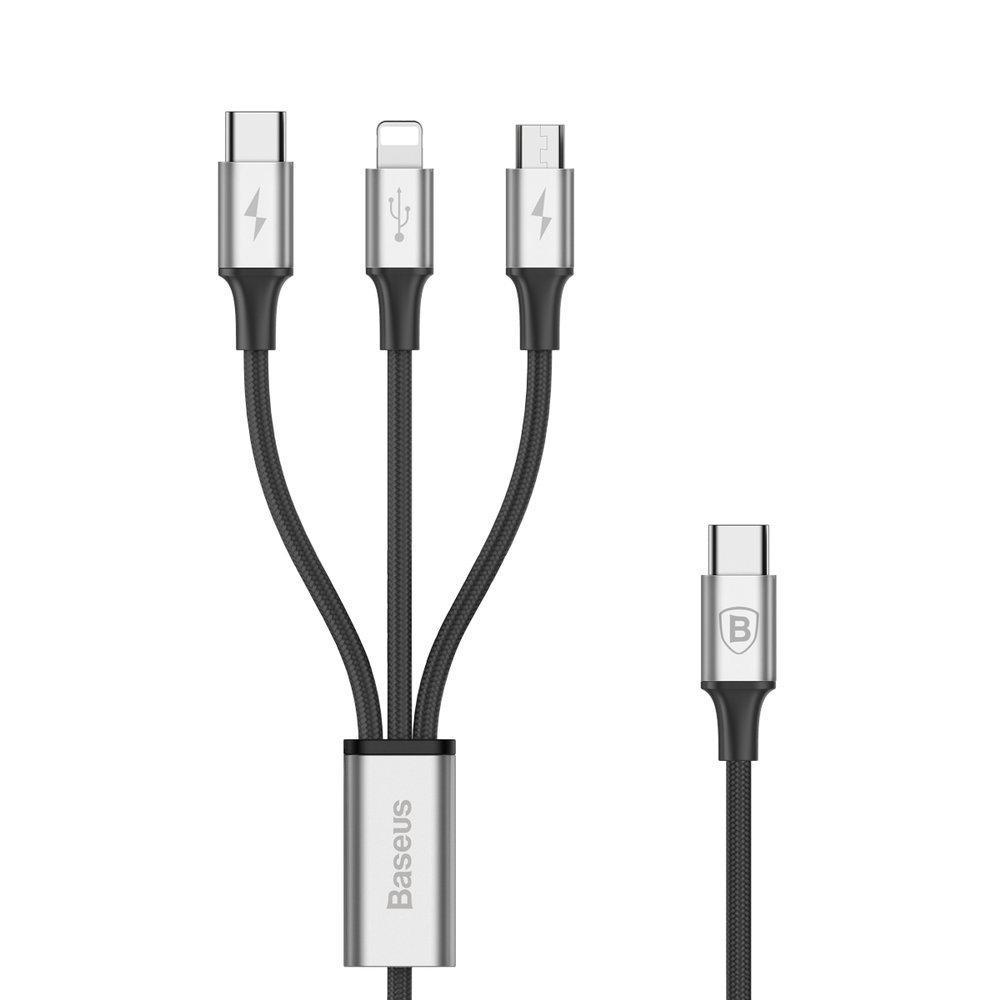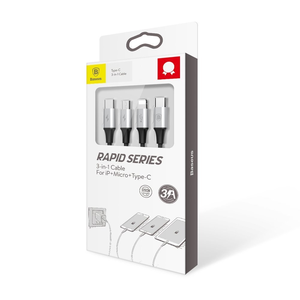 Baseus Rapid USB Type-C - micro USB/ Lightning/ USB Type-C kábel 1,2m 3A ezüst (CAMLT-SUS1)