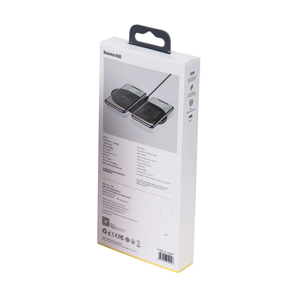 Baseus Simple 2in1 vezeték nélküli telefon és airpods Qi töltő 15W fekete (WXJK-01)