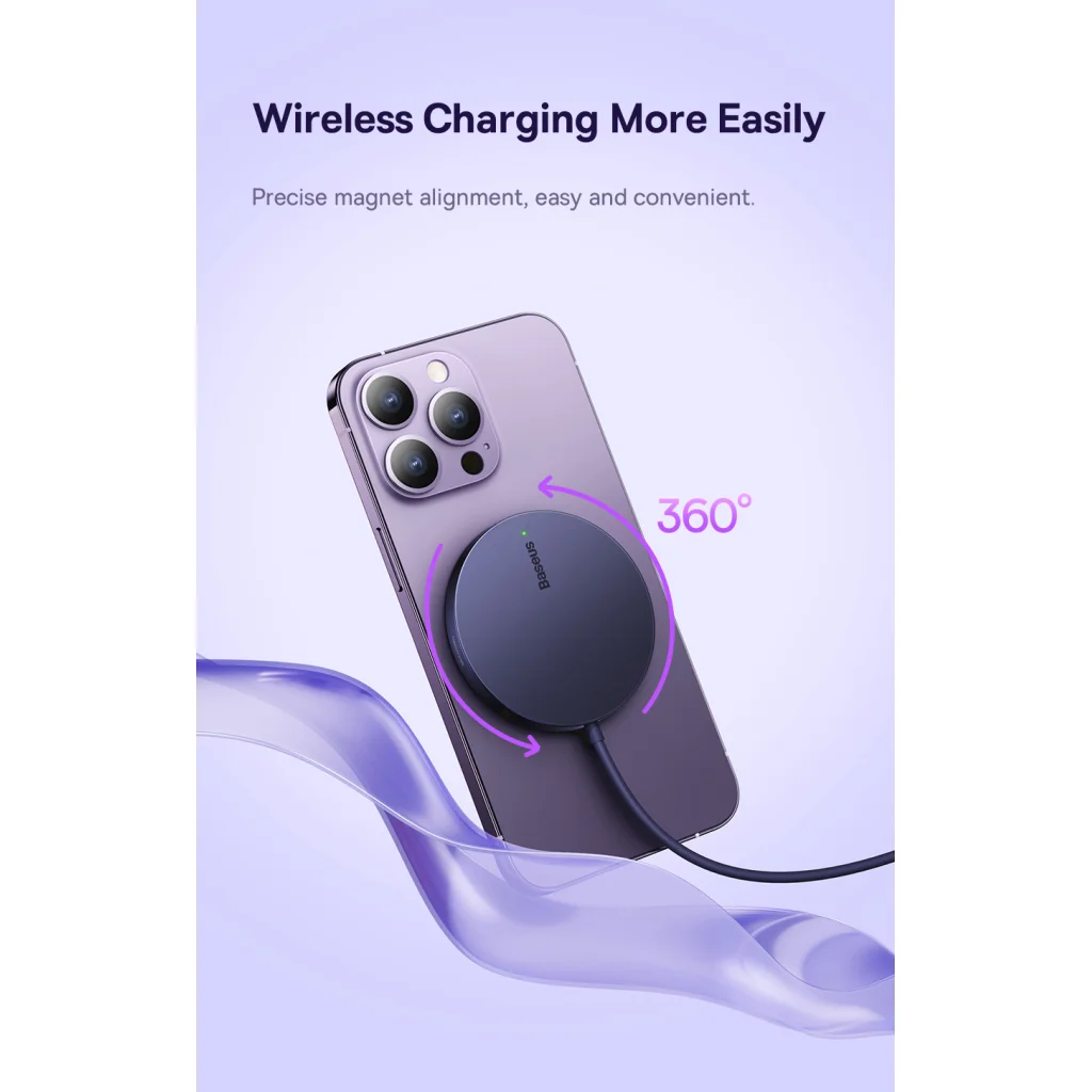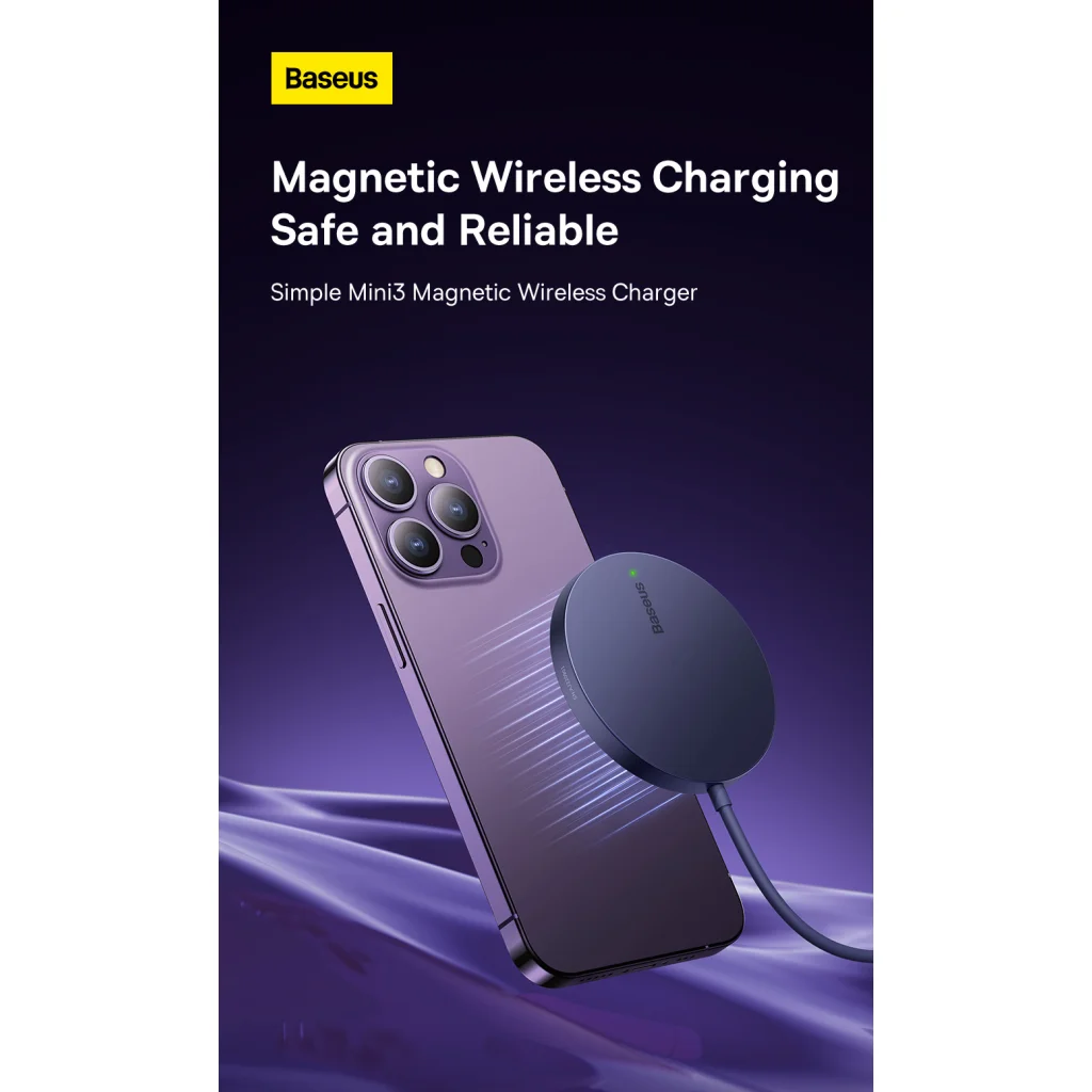 Baseus Simple Mini3 Mágneses (MagSafe), vezeték nélküli töltő, 15W (lila)
