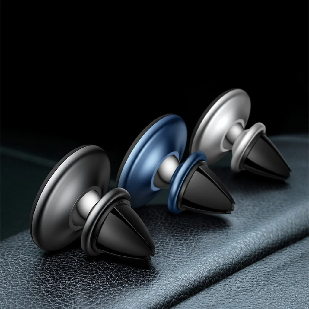 Szellőző lamellára rögzíthető mágneses autós telefontartó, 4 db mágnes gondoskodik a stabil rögzítésről. A telefonnal érintkező felületén szilikon bevonat található, így nem okoz karcolódásokat. Csomag tartalma két darab fém betét.