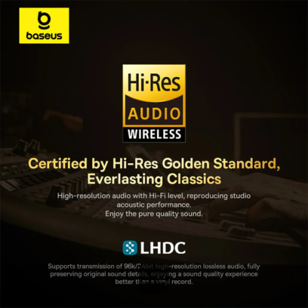 A Baseus Bowie M2s Ultra nem csupán fülhallgató, hanem egy belépő a Hi-Res hangzás világába. Az LHDC technológiának köszönhetően 96k/24bit felbontású, veszteségmentes hangot élvezhet, amely hűen reprodukálja az eredeti hangfelvétel minden részletét. A Hi-Res Arany Standard minősítés garantálja a stúdió szintű akusztikus teljesítményt és a tiszta, gazdag hangzást, amely jobban szól, mint egy bakelitlemez.