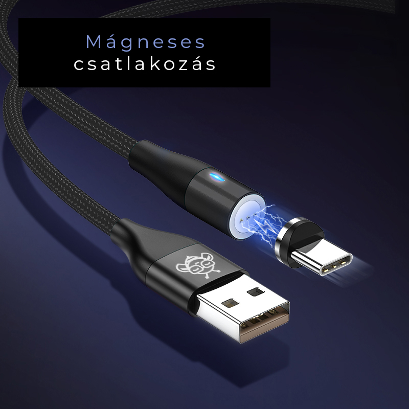 Minőségi kábelharisnyázás a tartósság érdekében. A maximum teljesítmény 3A. A kábel töltésre és adatátvitelre is használható. A fej mágneses, így töltés után egy pillanat alatt leválaszthatja, a telefonjában marad a fej (360 fokos fej). LED világítással a fejen. Plusz kiegészítő fejek is megvásárolhatóak hozzá.