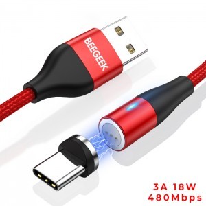 BeeGeek AM60 USB kábel 1M 3A 18W QC 3.0 gyorstöltés USB-C mágneses fejjel, 1 méter piros színben