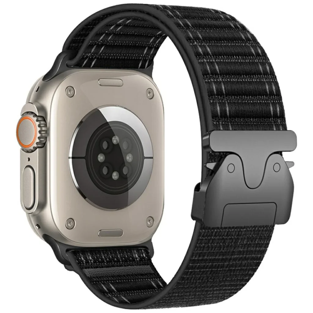 A Beline Szőtt Nylon Diagonál Stílusú Ejtőernyő Szíj kényelmes Apple Watch szíj, amely nylonból készült, így ideális a mindennapos használatra. A szíjat kiváló minőségű, tartós és erős szálakból szőtték, létrehozva egy olyan pántot, amely rendkívül ellenálló a napi viselet során. A szíj megerősített élekkel és további varrással rendelkezik, mely megvédi a szakadástól vagy foszlástól. A szíj csattos záródással állítható és könnyedén igazítható az egyéni igényekhez, így tökéletesen illeszkedik a csukló körméretéhez.