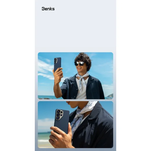 A Benks tok nem csak védelmet nyújt, hanem kiegészíti a Samsung Galaxy S26 Plus letisztult dizájnját. A mélykék, finoman szőtt textúra elegáns és modern megjelenést kölcsönöz, miközben a vékony profil és a kellemes tapintás kényelmes fogást biztosít. A pontos kivágások és a könnyen hozzáférhető gombok garantálják a zökkenőmentes használatot.