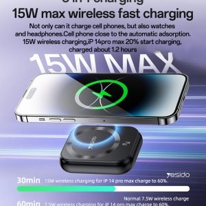 Benks Power bank 5000mAh YP59 3 az 1-ben - Type C - mágneses, indukciós 15W fekete