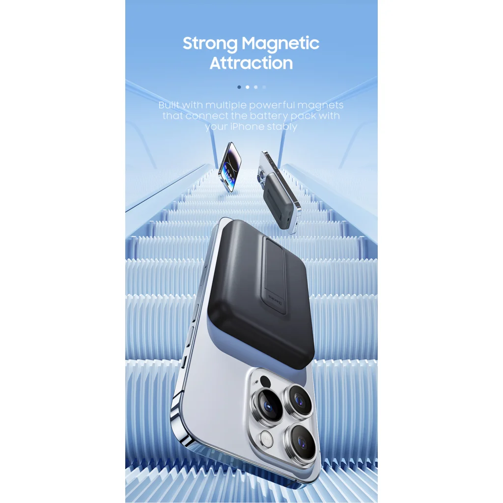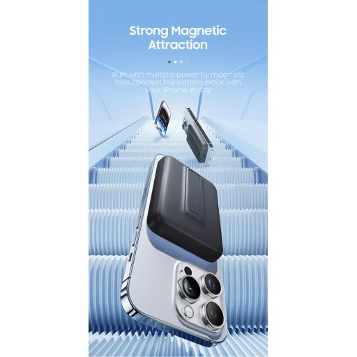 Több erős mágnessel van ellátva, amelyek stabilan összekapcsolják az akkumulátorcsomagot az iPhone-nal