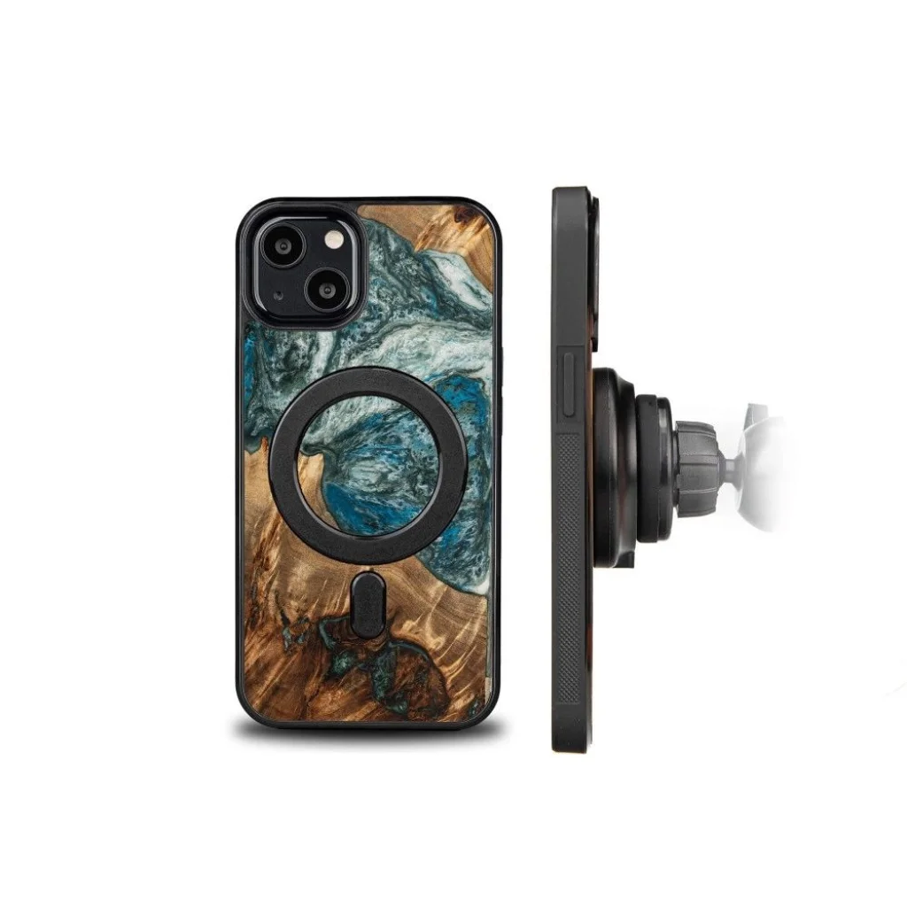 Bewood Unique fa és gyanta tok Apple iPhone 13 Mini MagSafe-hez | kék-zöld