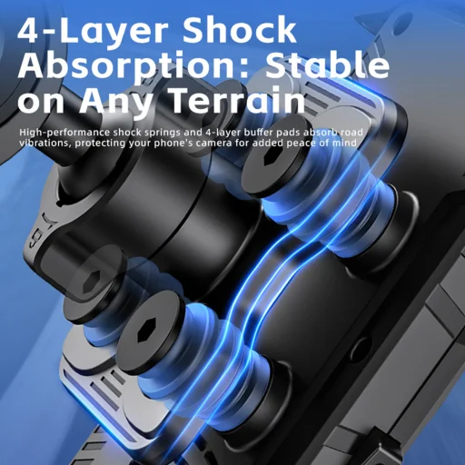 Ez a telefontartó egyedülálló, robosztus, aktív felfüggesztési rendszerrel és 4 rétegű lengéscsillapító technológiával van felszerelve. A nagy teljesítményű rugók és ütközőbetétek hatékonyan nyelik el az út egyenetlenségeiből adódó rázkódásokat és vibrációkat. Ez a fejlett rendszer nemcsak a telefon általános épségét óvja, hanem különösen védi a kényes kamera modult és az optikai képstabilizációt (OIS), megelőzve a hosszú távú károsodást. Így készüléke biztonságban van, és Ön zavartalanul használhatja navigációs vagy sportalkalmazásait még a legdinamikusabb terepen is, legyen szó MTB menetről vagy macskaköves szakaszokról.