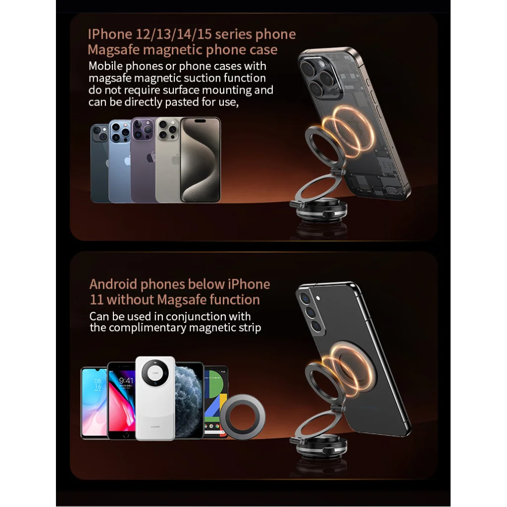 - MagSafe és N52 Neodímium mágnesek: A beépített 16 darab, ultraerős N52 neodímium mágnes páratlan tapadást garantál, amely zökkenőmentesen működik MagSafe kompatibilis eszközökkel és mágneses tokokkal. A stabil, zárt mágneses mezőnek köszönhetően a telefon jelét nem zavarja, így a navigáció és a kommunikáció mindig zavartalan marad.