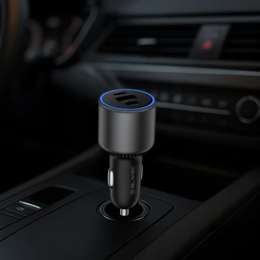 Egy fejlett 95W-os autós töltő olyan felhasználóknak, akik csúcsteljesítményt igényelnek. Három porttal és stilusos LED világítással van felszerelve, amely jelzi a töltés állapotát, így nappal és éjjel egyaránt kényelmes használatot biztosít.
