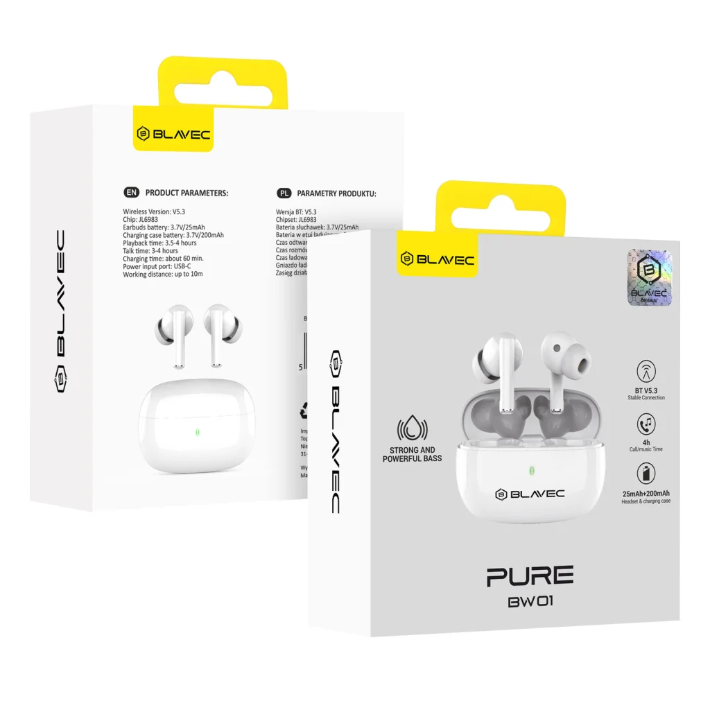 Ez a fülhallgató tökéletes választás mindazok számára, akik a kiváló hangminőséget, a felhasználói kényelmet és a modern funkcionalitást egyaránt értékelik. Legyen szó zenehallgatásról, telefonálásról, edzésről vagy utazásról, a Blavec BW01 Pure megbízható és stílusos társ lesz minden pillanatban, biztosítva a zavartalan élményt.