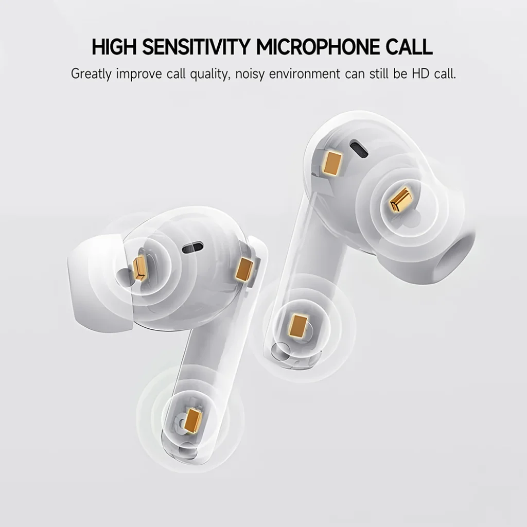 • Zavartalan kommunikáció bárhol: A beépített, nagy érzékenységű mikrofonnak köszönhetően kristálytiszta HD hívásokat bonyolíthat, még zajos környezetben is. Az in-ear kialakítás kiváló fizikai zajszigetelést és zajcsökkentést nyújt, hatékonyan kiszűrve a környezeti zajokat, így javítva a hívásminőséget és a beszélgetések tisztaságát.