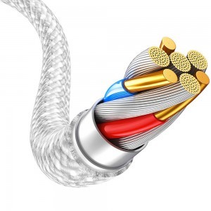 A kábel tartós fonott nylon borítással rendelkezik, amely kivételes ellenállást biztosít a sérülésekkel szemben, miközben prémium megjelenést kölcsönöz.