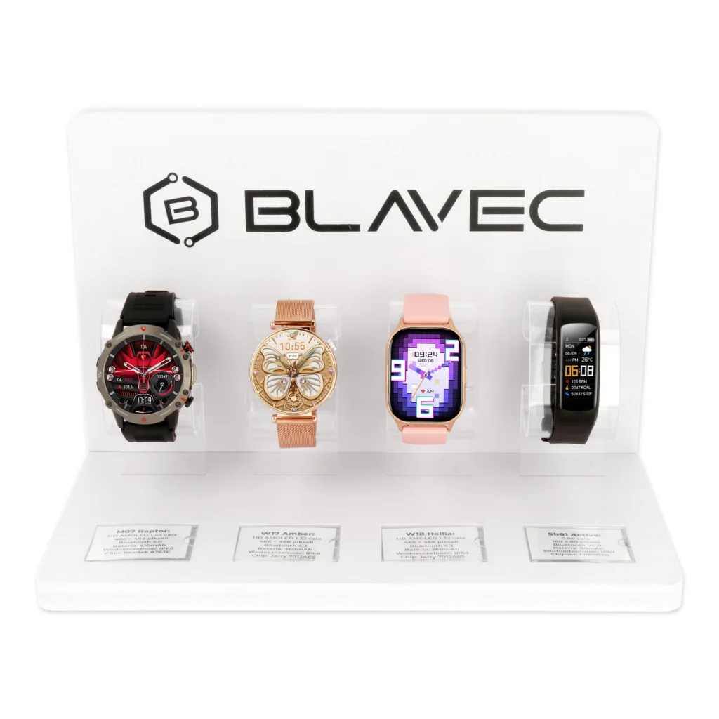 - Modern esztétika – Elegáns megjelenés, amely növeli a kiállított okosórák vonzerejét.