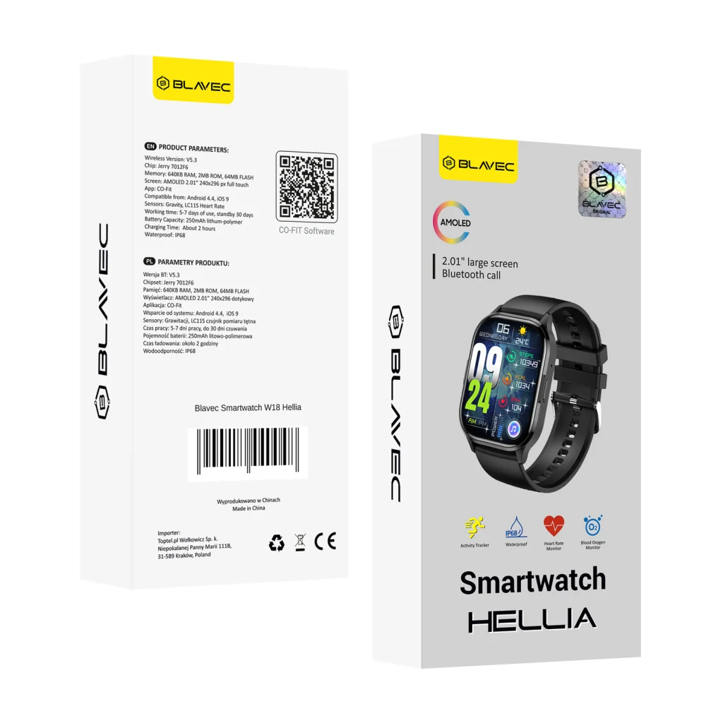 A Blavec W18 Hellia okosóra az Ön személyes egészségügyi asszisztense, amely a nap 24 órájában, folyamatosan figyeli a legfontosabb életfunkciókat, segítve Önt egy egészségesebb életmód kialakításában: