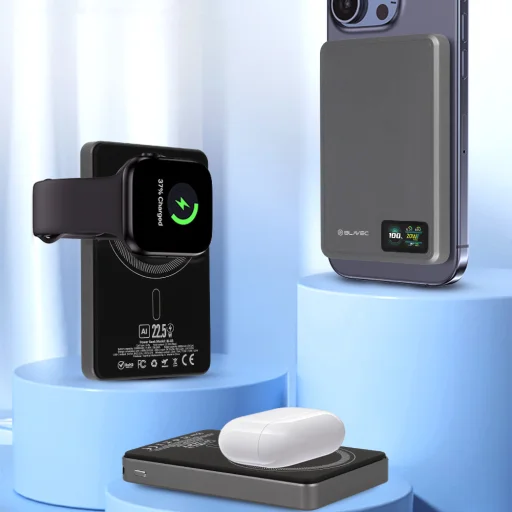 Széles kompatibilitás: Működik iOS, Android, fülhallgatók, okosórák és minden Qi-kompatibilis eszközzel.