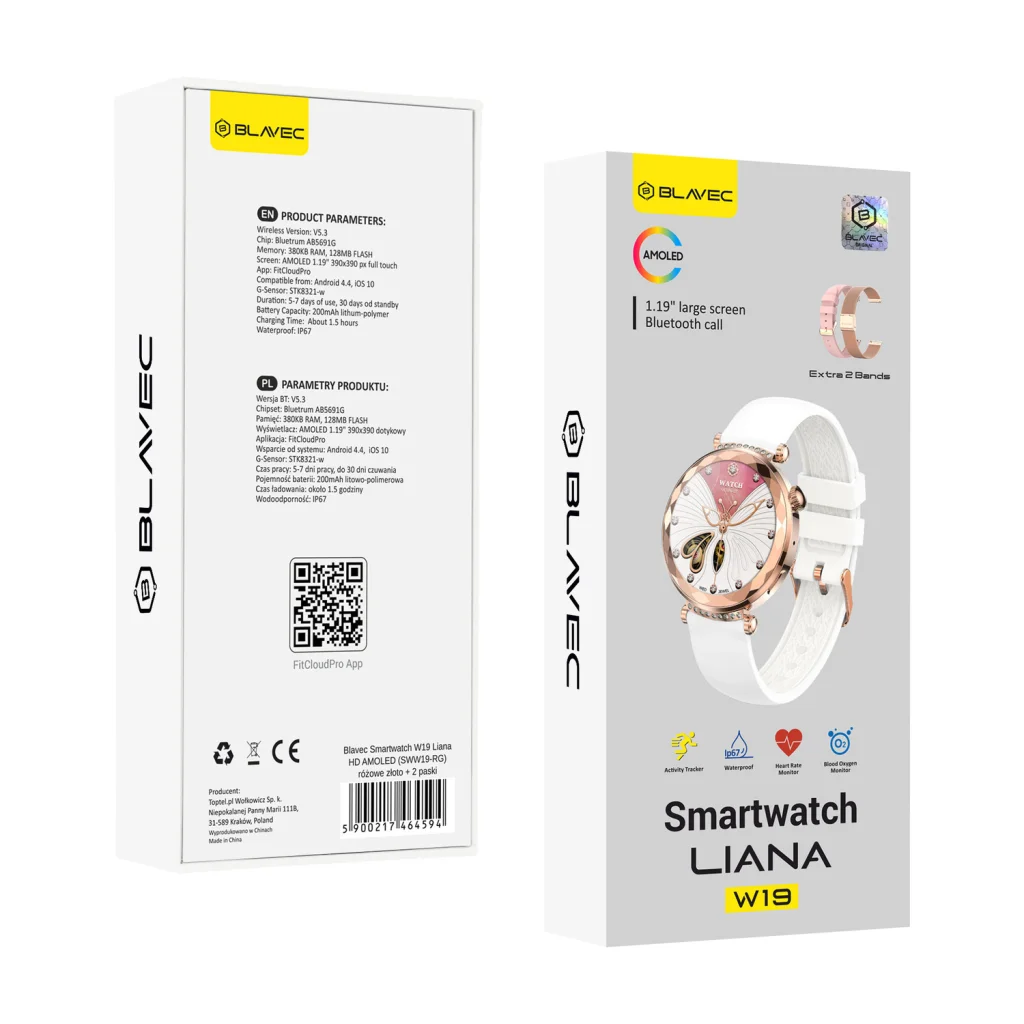 Blavec Smartwatch W19 Liana HD AMOLED (SWW19-RG) – Rose Gold + 2 Szíj