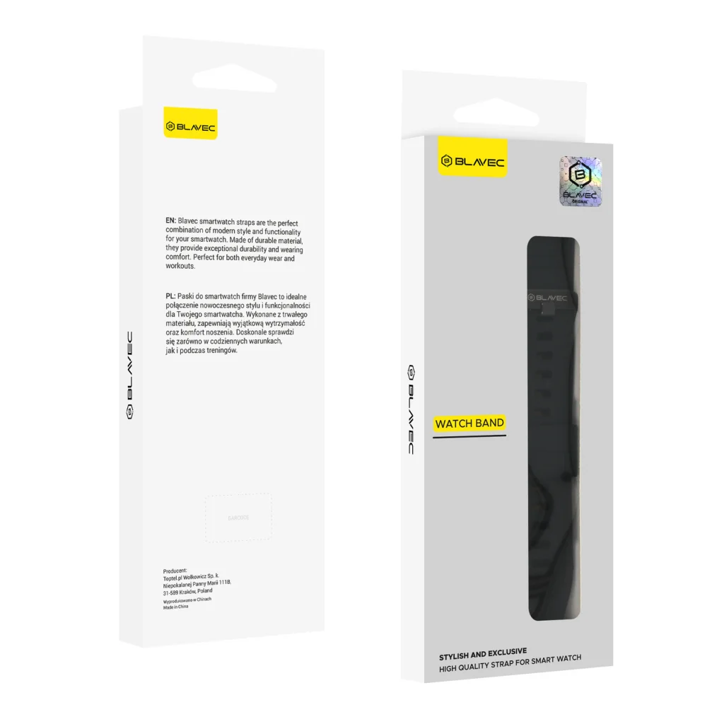 Minden napi kényelem és tartósság - Rugalmas és puha tapintású szilikon – Kiváló minőségű anyag, amely egész napos kényelmet biztosít. - Nedvesség- és izzadságálló – Tökéletes napi használatra, edzésekhez és aktív életmódhoz. Állítható és sokoldalú illeszkedés - Állítható csat – Pontos beállítás a tökéletes csuklóilleszkedésért. - Univerzális 22mm szélesség – Kompatibilis a Blavec M07 Raptor okosórákkal és más modellekkel, amelyek 22mm teleszkópos tűs rögzítéssel rendelkeznek. Modern dizájn és precíz kidolgozás - Minimalista stílus – Karcsú megjelenés, amely illik sportos és hétköznapi öltözetekhez is. - Simított felület – Precíziós kialakítás éles élek nélkül a maximális viselési kényelem érdekében. Gyors és egyszerű telepítés - Gyorskioldó rendszer – A készlet tartalmaz 2 gyorskioldó teleszkópos tűt a könnyű szíjcseréhez. - Felhasználásra kész – Teljes készlet, amely lehetővé teszi az azonnali telepítést további eszközök nélkül.