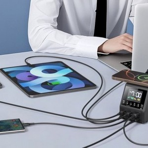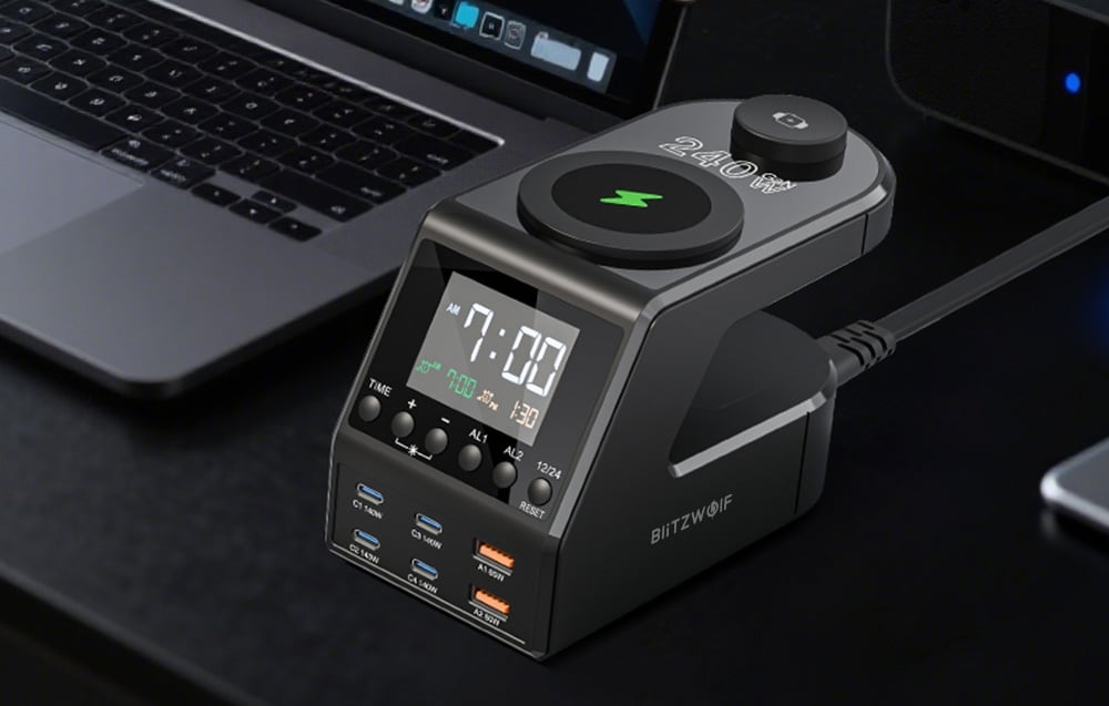 A Blitzwolf BW-FW10 nem csak egy stílusos ébresztőóra kettős ébresztési funkcióval, hanem egy fejlett 10 az 1-ben töltőállomás is, amely akár 240 watt kimeneti teljesítményt kínál. Kényelmesen és biztonságosan tölti az összes készülékét - az okostelefontól a laptopig - egy helyen.