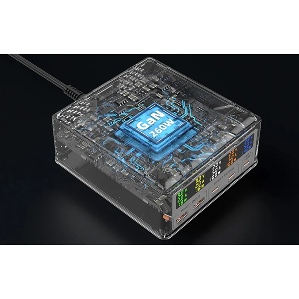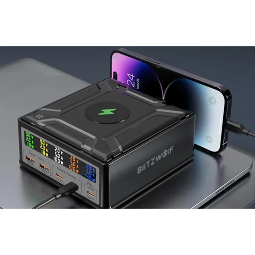 A BlitzWolf BW-S28 hálózati töltő egy fejlett megoldás több eszköz egyidejű töltésére. A 260 wattos maximális kimeneti teljesítményével és öt portjával (2xUSB-A, 3xUSB-C) akár öt eszköz egyidejű, hatékony áramellátását teszi lehetővé. A terméket széles körű kompatibilitás és digitális kijelző is jellemzi, amely hozzáférést biztosít az aktuális paraméterekkel kapcsolatos információkhoz. Lehetővé teszi a vezeték nélküli töltést is, ami tovább növeli a funkcionalitását.
