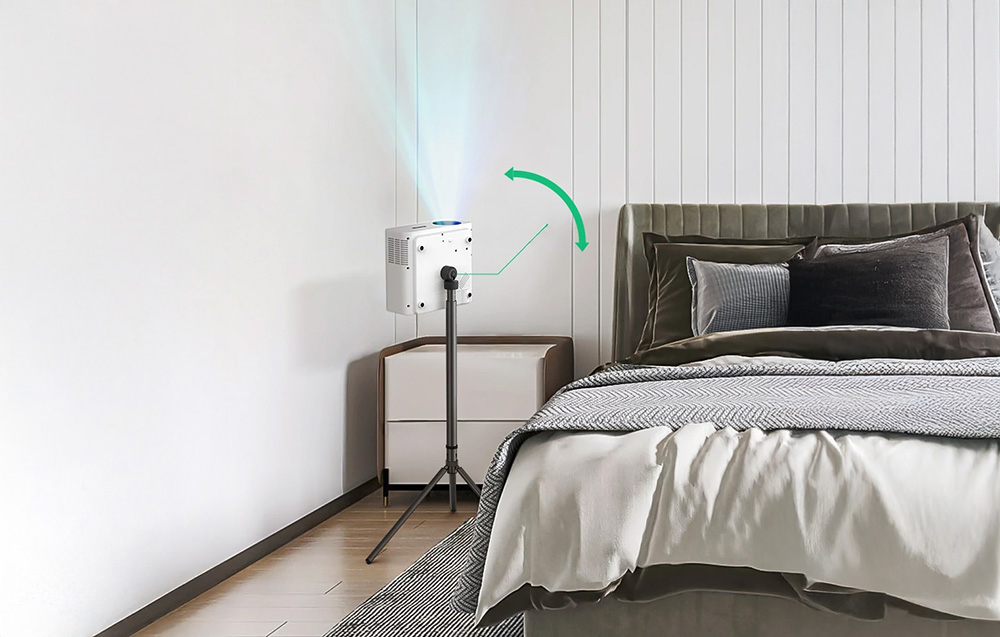 Az állvány intuitív magasságállító rendszerrel rendelkezik, amely egy két szegmensből álló konzollal rendelkezik, amely lehetővé teszi a csövek zökkenőmentes meghosszabbítását akár 450 mm-ig. Emellett a gyorsrögzítő mechanizmusoknak köszönhetően az állvány pillanatok alatt össze- és széthajtható, ami jelentősen megkönnyíti a mindennapi használatot. A PTZ típusú forgófej teljes 360°-os elforgatást és 90°-os dőlést tesz lehetővé a tökéletes vetítési szög érdekében - akár a falra, akár a mennyezetre, akár oldalra szeretné irányítani a készüléket.