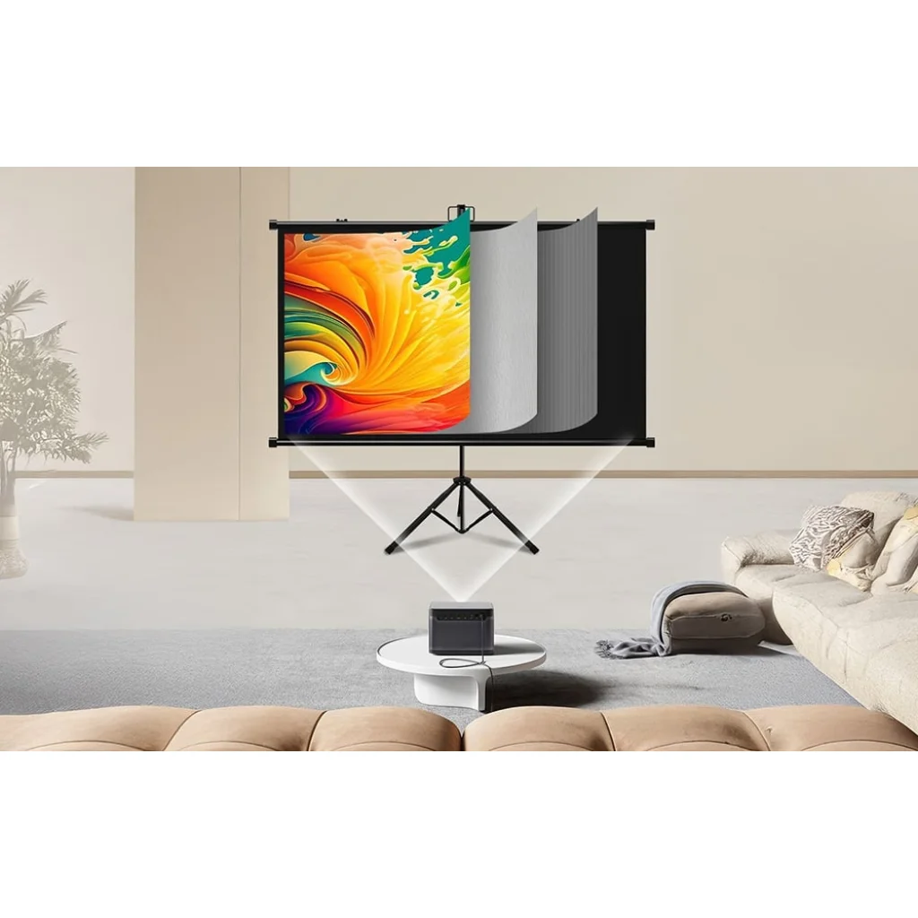 A Blitzwolf BW-VS12 60 hüvelykes modell egy kompakt és hordozható vetítővászon, amelyet kényelmes otthoni, irodai és szabadtéri használatra terveztek. Támogatja a 16:9 és 4:3 képarányokat, és teljes kompatibilitást biztosít a 3D és 4K HD projektorokkal. Többrétegű, képalkotó réteggel ellátott felületének köszönhetően a képernyő éles, részletes képet és intenzív színeket biztosít. Összecsukható kialakítása és az állványra szerelhetőség vagy felfüggesztés lehetősége sokoldalú megoldást kínál számos helyzetre.