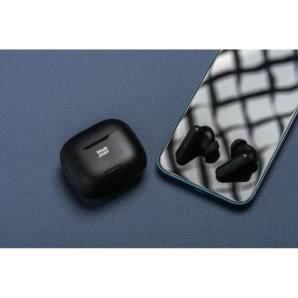 A BLUE STAR TWS BK31 vezeték nélküli fülhallgatók modern megoldást kínálnak a zenekedvelőknek, akik a kényelmet és a hangminőséget értékelik. Bluetooth 5.4 technológiát használnak, amely stabil kapcsolatot biztosít és zökkenőmentes audio streaminget tesz lehetővé kompatibilis eszközökkel akár 12 méteres hatótávolságon belül. LED diódák jelzik a fülhallgatók és a tok töltöttségi szintjét. A fülhallgatók beépített 30 mAh-s akkumulátorral rendelkeznek, amelyek akár 5 óra folyamatos zenehallgatást biztosítanak, és a 300 mAh-s akkumulátorral ellátott tokjuk lehetővé teszi a kényelmes töltést útközben. A fülhallgató töltési ideje körülbelül 1,3 óra, ami rendkívül hatékony, és gyors visszatérést tesz lehetővé a kedvenc dallamokhoz. A USB-C töltőport ma már szabványos, így a fülhallgatók a legtöbb modern kábel és töltő segítségével feltölthetők. Az ergonomikusan tervezett füldugók viselési kényelmét biztosítják, amelyek alkalmazkodnak a fül formájához, minimalizálva a mozgás közbeni kiesés kockázatát. Emellett a fülhallgatók IPX4 minősítéssel rendelkeznek, ami azt jelenti, hogy ellenállnak a víznek és az izzadságnak, ami fontos a kültéri edzések során.