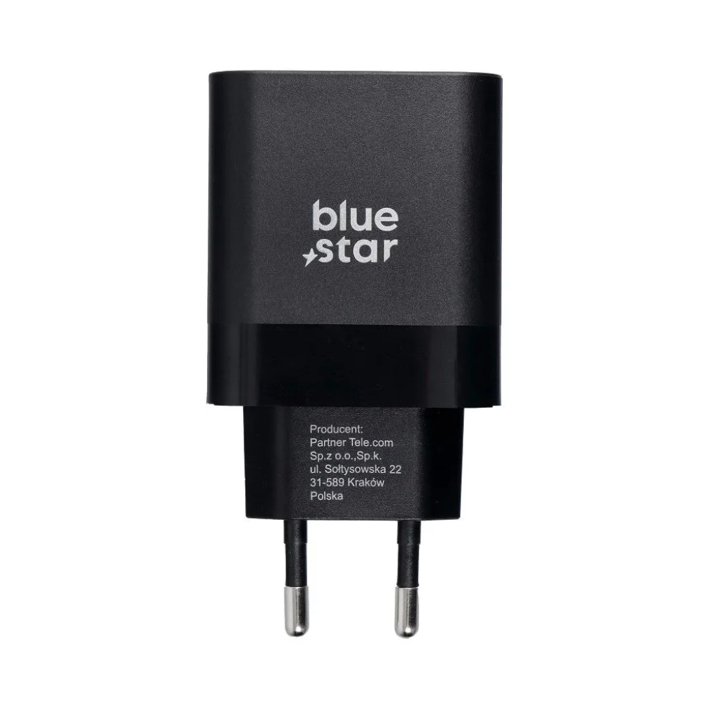 A Blue Star fali töltő gyors töltési funkcióval rendelkezik. Támogatja a Quick Charge és Power Delivery töltési szabványokat a gyors töltést támogató eszközök azonnali feltöltéséhez. Levehető USB-C to USB-C kábel tartozik hozzá.