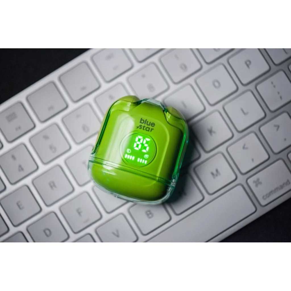 A BLUE STAR TWS Transparency Fi22 vezeték nélküli fülhallgatók modern megoldást jelentenek a zene szerelmeseinek, akik értékelik a kényelmet és a hangminőséget. Bluetooth 5.3 technológiát alkalmaznak, amely stabil kapcsolatot és zökkenőmentes hangátvitelt biztosít a kompatibilis eszközökkel legfeljebb 10 méter távolságban. A digitális kijelző jelzi a fülhallgatók és a tok töltöttségi szintjét. Ezek az ergonomikusan tervezett fülhallgatók támogatják az A2DP, AVRCP, HSP, HFP szabványokat, amely lehetőséget biztosít nemcsak zenehallgatásra, hanem kényelmes telefonhívások lebonyolítására is. A teljes frekvenciatartomány 20 Hz-től 20 kHz-ig terjed, így a felhasználók gazdag és tiszta hangzást élvezhetnek minden hangszinten. A fülhallgatók beépített 40 mAh akkumulátorokkal rendelkeznek, amelyek akár 5 óra folyamatos zenehallgatást biztosítanak, míg a 250 mAh-s akkumulátorral ellátott tok lehetővé teszi a kényelmes töltést útközben. A fülhallgatók töltési ideje körülbelül 1,5-2 óra, ami rendkívül hatékony, és gyors visszatérést tesz lehetővé a kedvenc hangokhoz. Az USB-C töltőport ma már szabványos, így a fülhallgatók a legtöbb modern kábellel és töltővel tölthetők. A digitális kijelző mutatja a fülhallgatók és a tok töltöttségi szintjét. Műszaki adatok: Bluetooth verzió: 5.3 (hatótávolság legfeljebb 10 m) Támogatás: A2DP, AVRCP, HSP, HFP Frekvencia átviteli tartomány: 20-20 000 Hz Akkumulátor kapacitása: 40 mAh (fülhallgatók), 250 mAh (tok) Kijelző: igen Működési idő: akár 5 óra Töltési idő: körülbelül 1,5-2 óra Töltőport: USB-C Csomag tartalma: - TWS BLUE STAR Transparency Fi22 fülhallgatók - USB-C töltőkábel - felhasználói kézikönyv
