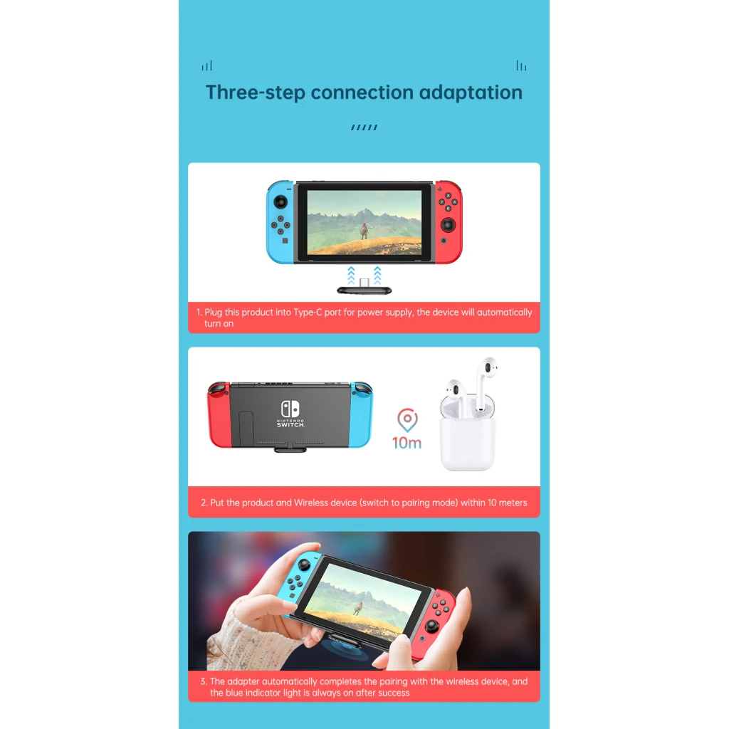 Segítségével csatlakoztathatunk csak Type-C porttal rendelkező eszközökhöz(Pl: Nintendo Switch) bluetooth fül-fejhallgatókat, hangszórókat. Plug and Play, nincs szükség telepítésre. Hatótáv 10 méter.