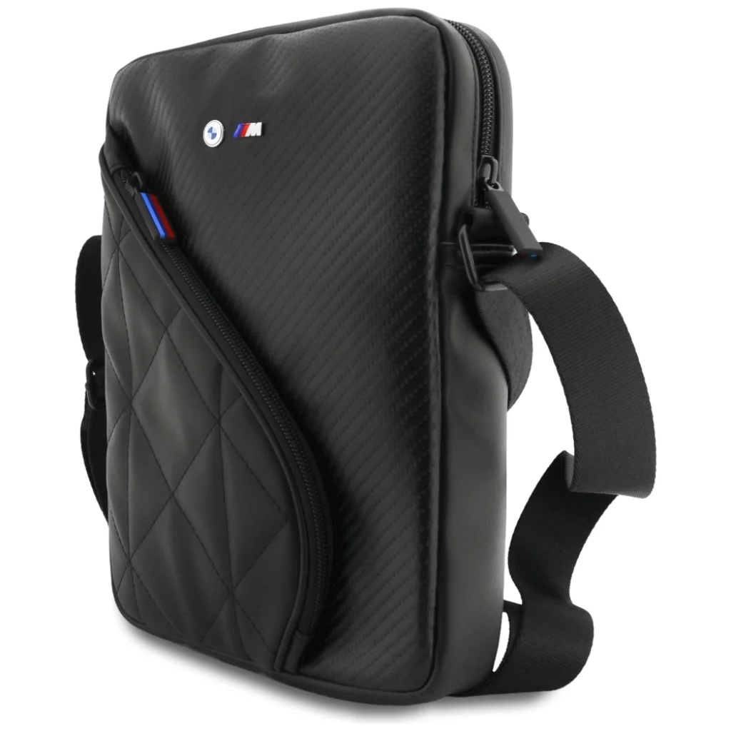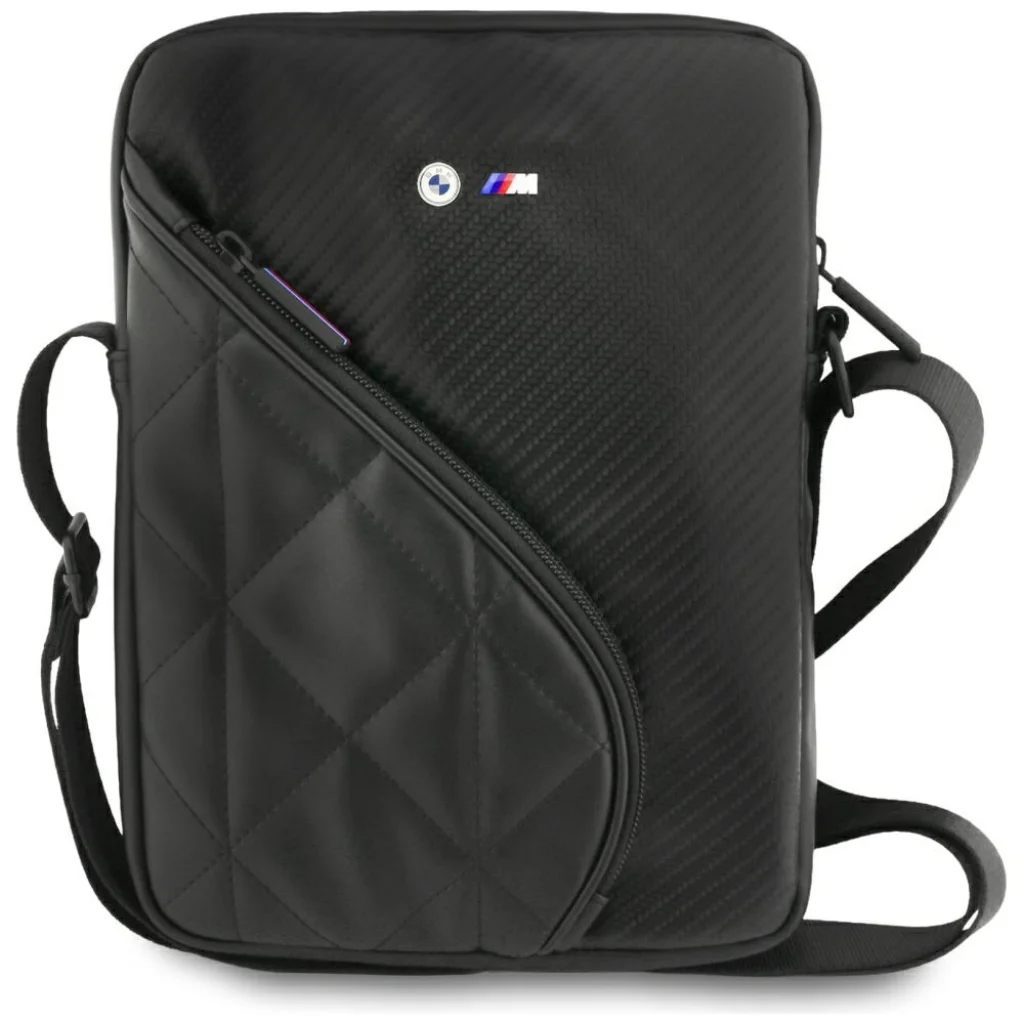 A BMW Carbon Pockets & Metal Logo 10" táska egy kompakt, stílusos és rendkívül funkcionális kiegészítő, amelyet kis tabletek, e-könyv olvasók és mobil kiegészítők használóinak terveztek. A BMW márka sportos DNS-ére utalva a táska magas minőségű karbon-textúrájú anyagot használ, amely dinamikus, modern megjelenést és kiváló tartósságot biztosít a mindennapi használathoz. A táska elejét egy masszív fém BMW logó díszíti, hangsúlyozva az egész kollekció presztízsét és exkluzív jellegét.