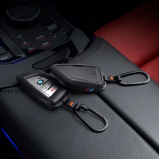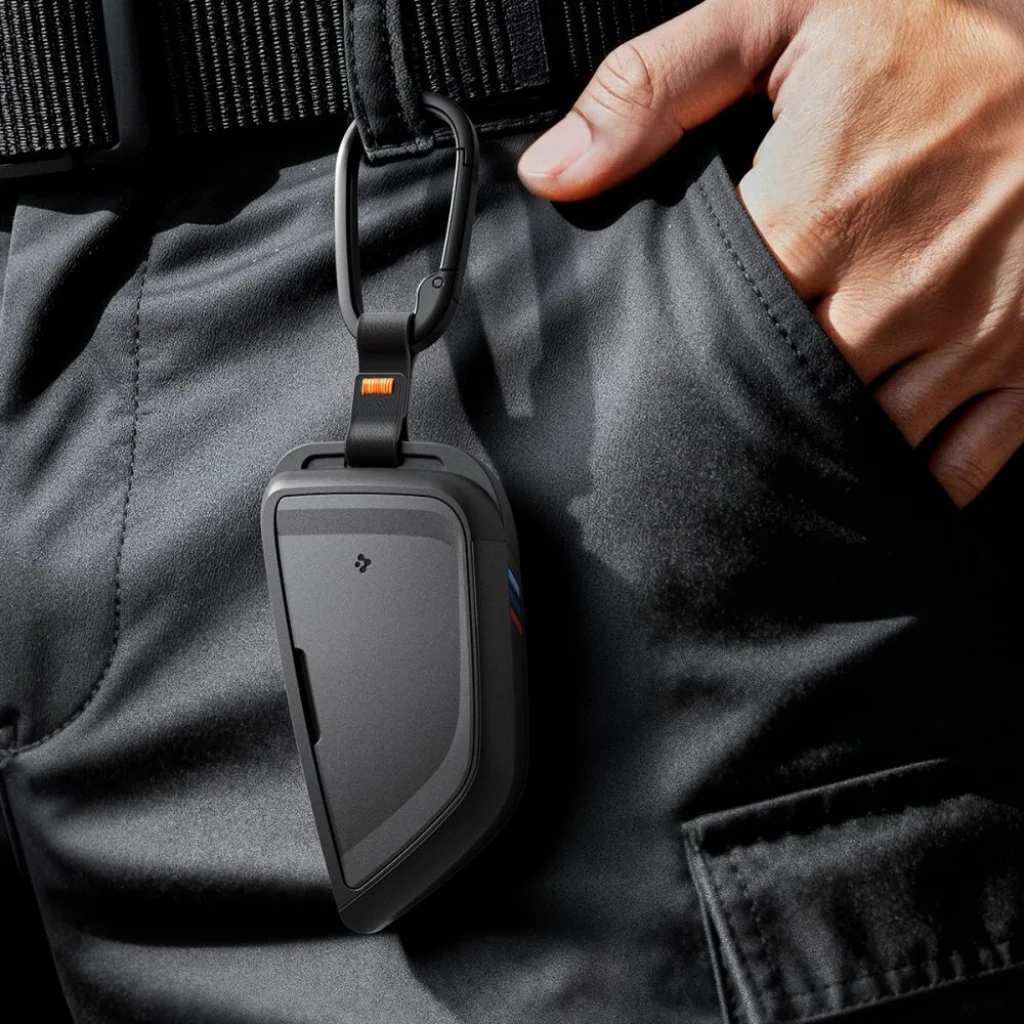 A Spigen BK100 a modern esztétika és a tartósság mintapéldája. A kifinomult karbonmintázat diszkrét, mégis sportos eleganciát kölcsönöz, amelyet a jellegzetes, ikonikus BMW M-sport színek trikolor kiemelése tesz még egyedibbé. A kiváló minőségű anyag kellemes tapintású, rendkívül tartós és kiválóan ellenáll a mindennapi kopásnak, biztosítva a kulcs hosszú távú kifogástalan megjelenését.