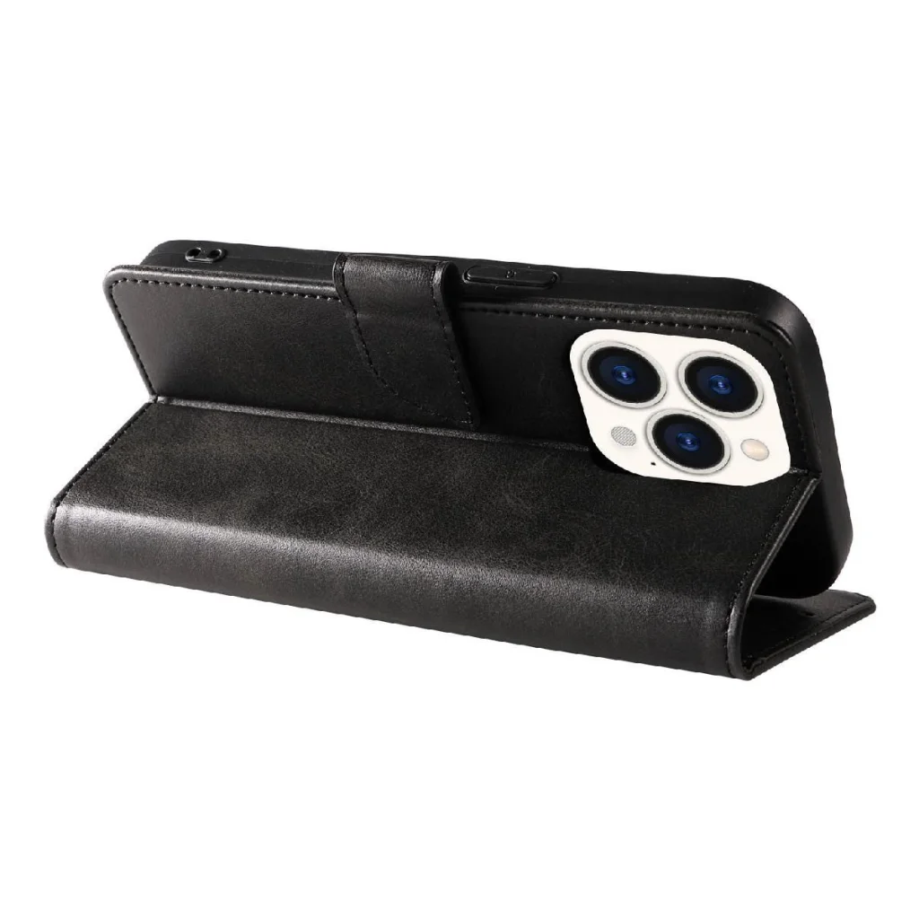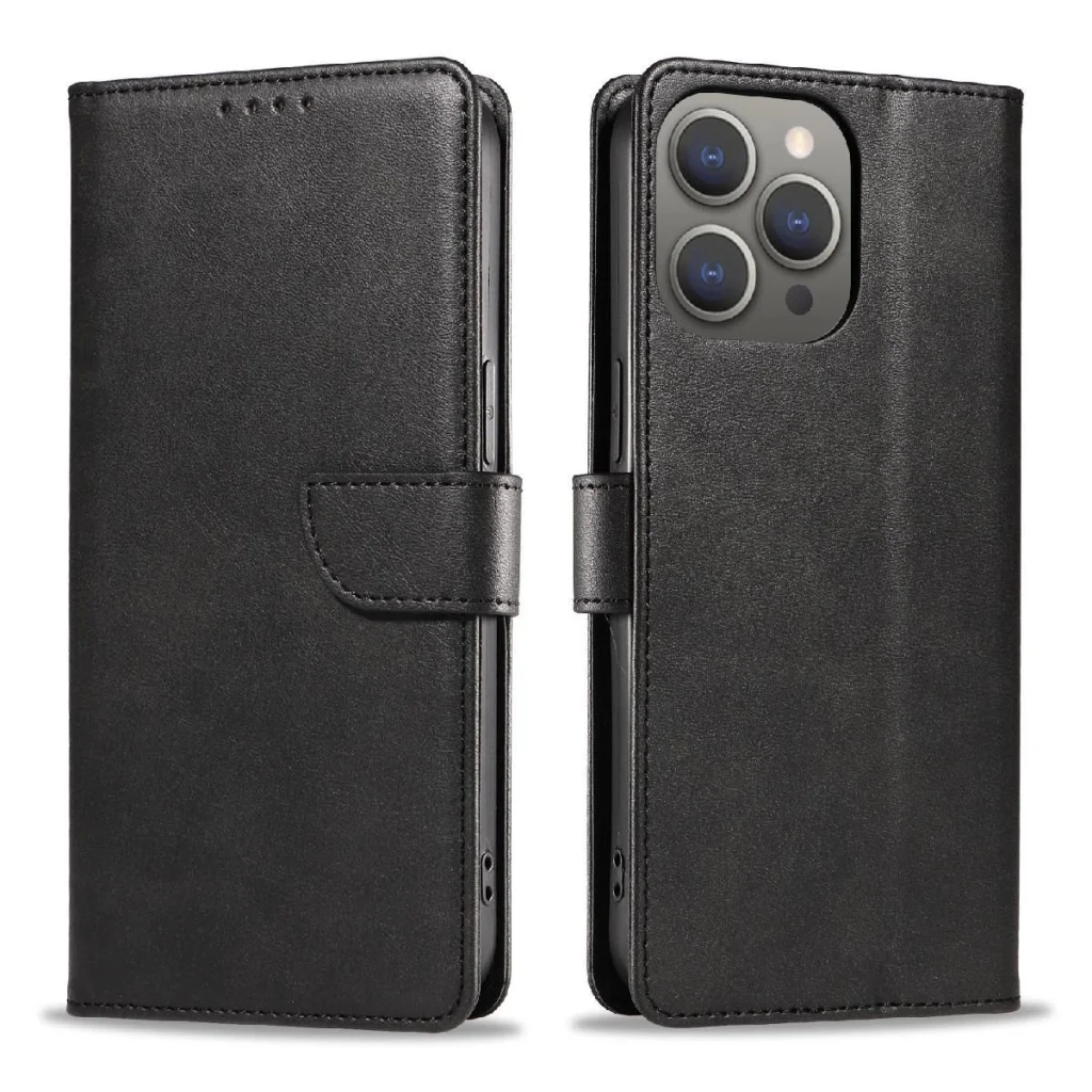 Bőr fliptok iPhone 16 Pro Max - fekete