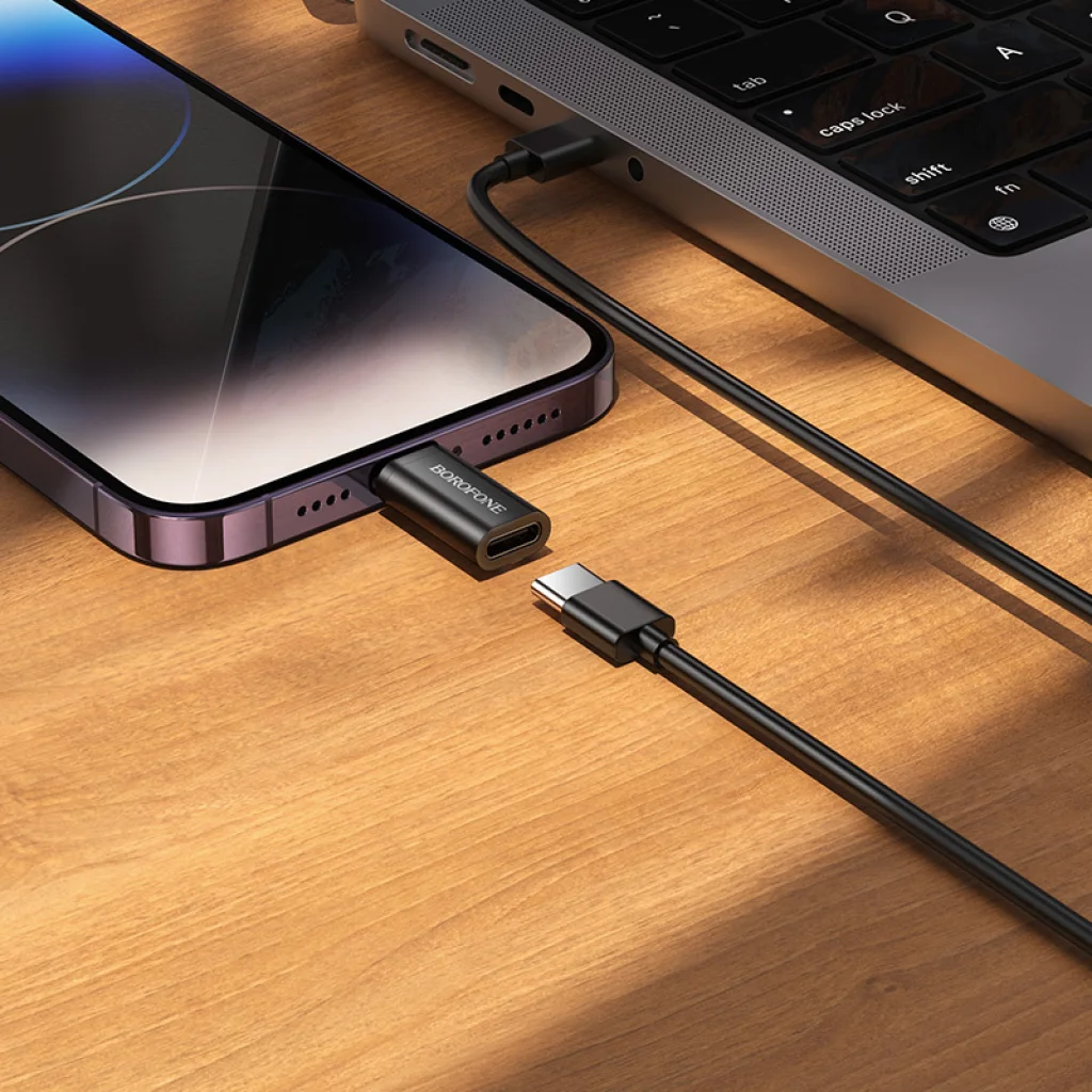 A Borofone Adapter BV26A – Type-C to Lightning – fekete egy kompakt és kényelmes adapter, amely lehetővé teszi, hogy USB-C kábeleket csatlakoztass Apple eszközökhöz, melyek Lightning porttal rendelkeznek. Támogatja az adatátvitelt és a legfeljebb 5V/2A töltést, amikor Type-C kábel vagy USB-hez Type-C átalakítóval van párosítva. Az adapter nem támogatja az OTG vagy PD funkciókat, így alkalmas a normál töltési és szinkronizálási igények kielégítésére. -Csatlakozó: Lightning férfi - Type-C női -Támogatja az adatátvitelt (nincs OTG funkció) -Támogatja az 5V/2A töltést (nincs PD funkció)
