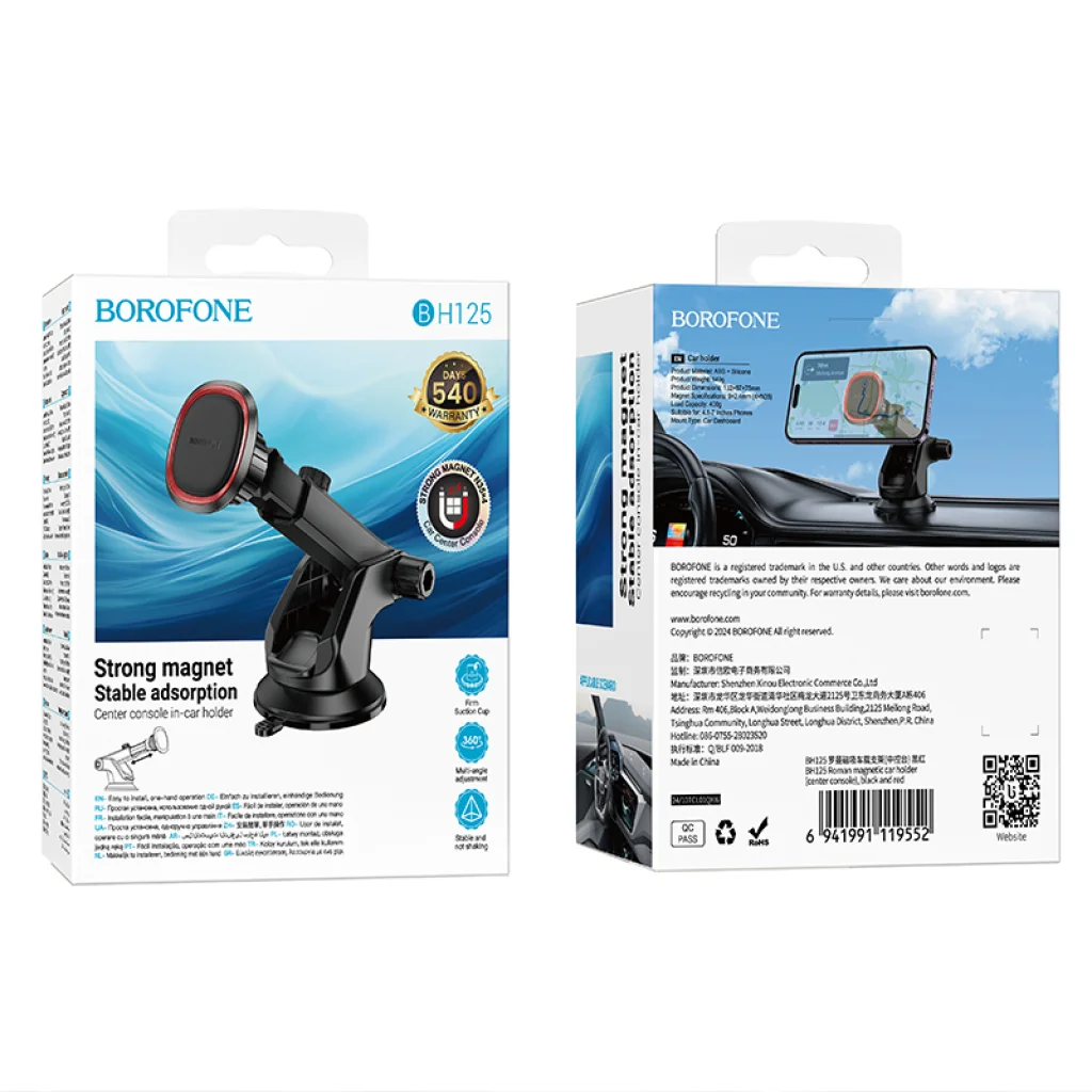 A Borofone BH125 Roman mágneses autós tartó a modern autós kiegészítők csúcsa, melyet a funkcionalitás, a tartósság és a kifinomult design jellemez. A fekete-piros színvilágú, letisztult forma nem csupán esztétikus, hanem rendkívül praktikus is, biztosítva, hogy telefonja mindig kéznél és szem előtt legyen, miközben Ön biztonságosan koncentrálhat az útra.