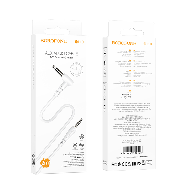 Borofone BL10 3.5mm jack audio kábel döntött 2m fehér