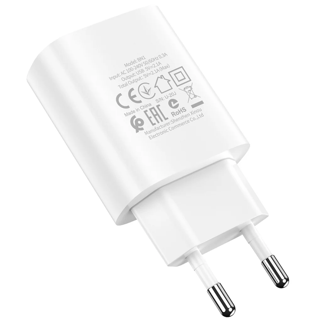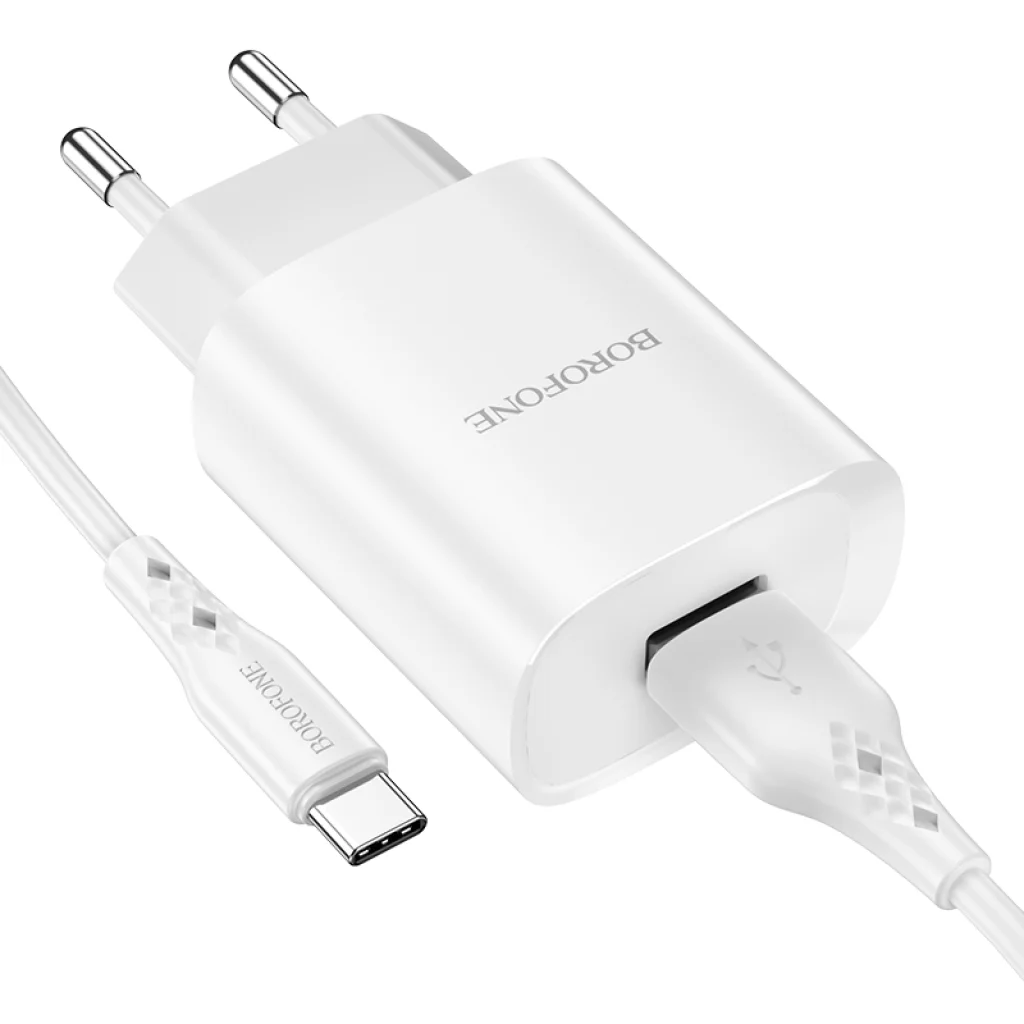 Borofone BN1 Hálózati töltő adapter USB 2.1A + USB Type-C kábel fehér