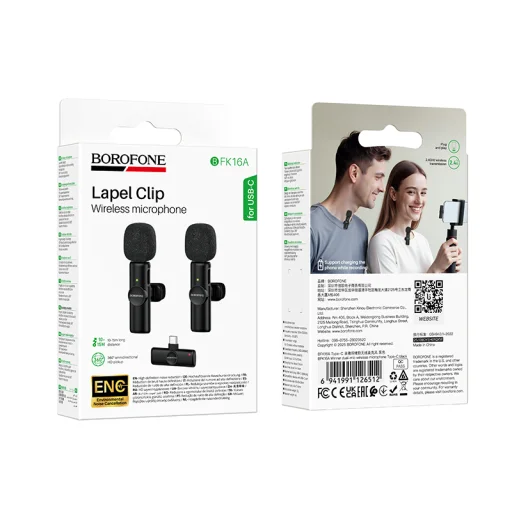 A Borofone BFK16A Winner vezeték nélküli lavalier mikrofon Type-C – fekete egy rendkívül praktikus kettős vezeték nélküli mikrofon készlet, amelyet kifejezetten a modern tartalomkészítők, vloggerek, podcasterek és élő streamerek igényeinek megfelelően terveztek. Tökéletes választás interjúkhoz, duó videókhoz és minden olyan helyzethez, ahol két hangforrást szeretne kristálytiszta minőségben rögzíteni. Digitális USB-C csatlakozójának és stabil vezeték nélküli átvitelének köszönhetően kényelmes használatot és kiváló minőségű hangrögzítést biztosít, minimalizálva a kábelek okozta rendetlenséget.