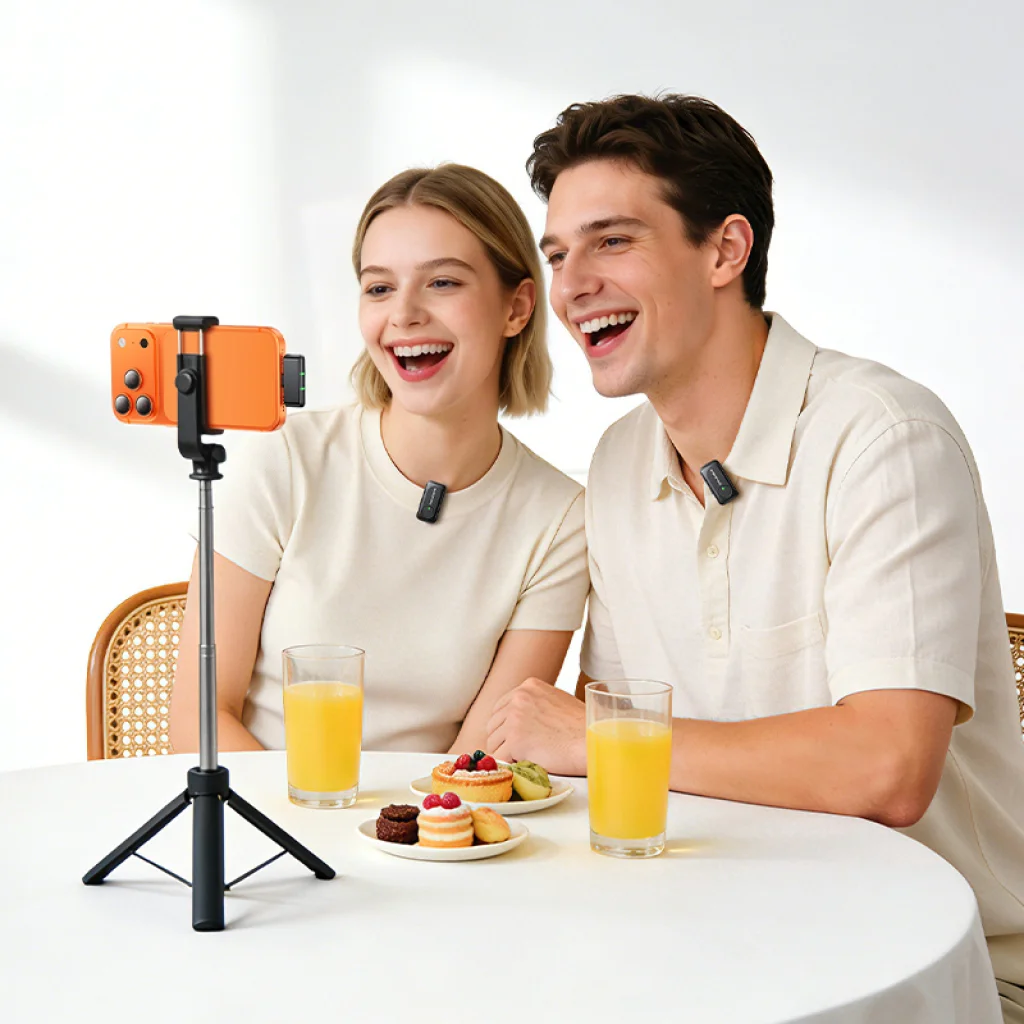 - Dupla mikrofon a közös tartalomgyártáshoz: A két különálló mikrofonnak köszönhetően könnyedén rögzíthetsz interjúkat, párbeszédeket vagy közös videókat, ahol két ember hangját szeretnéd egyszerre felvenni.
