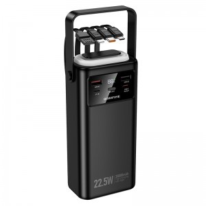 - Extrák: Gyors töltés (QC 3.0, PD 20W), beépített kábelek, integrált kihúzható LED lámpa, hordozófül, többszörös biztonsági védelem