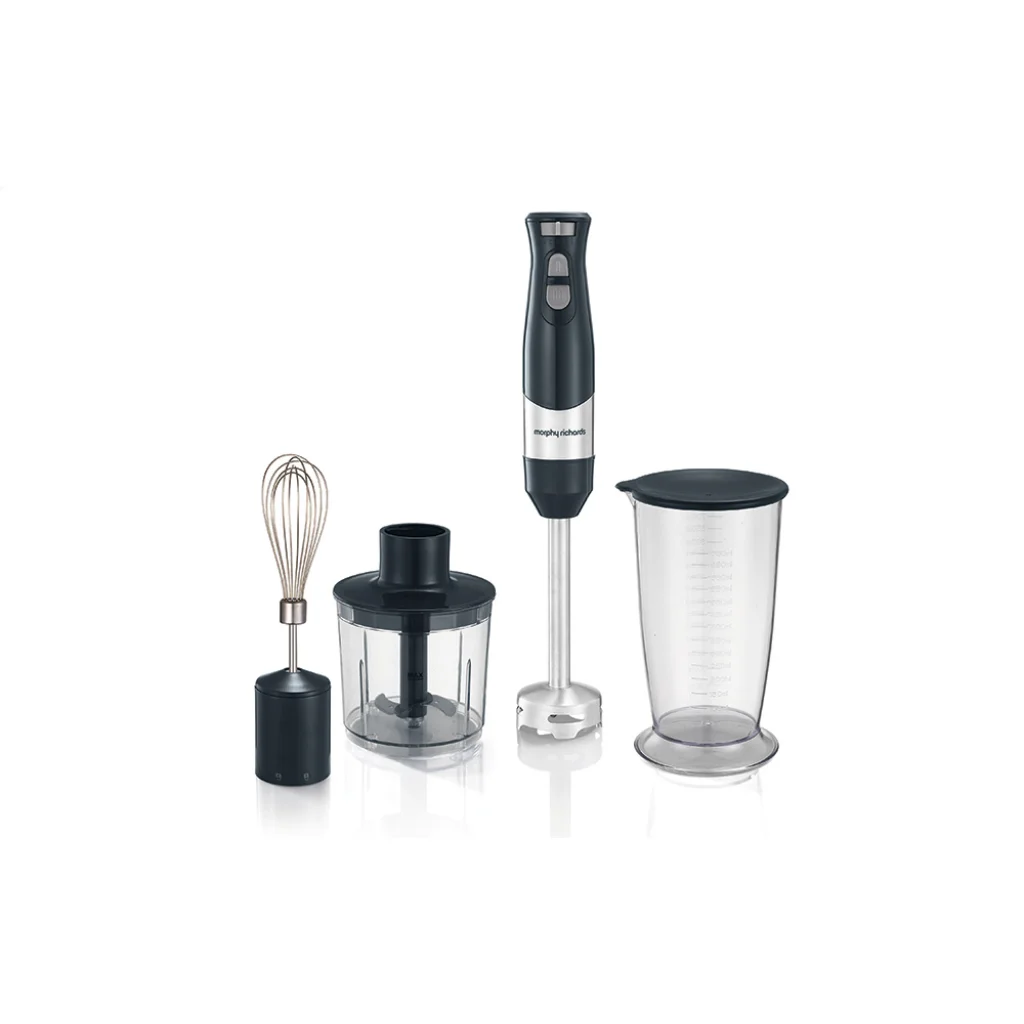 Hozz több ízt és vitamint a konyhádba! A Morphy Richards 402061 botmixer egy erőteljes és praktikus eszköz, amely tökéletes a napi főzéshez. Az erős motorral, turbó móddal és változtatható sebességekkel könnyedén turmixolhatsz, keverhetsz és készíthetsz különféle ételeket – az egészséges levesektől a frissítő turmixokig. Továbbá 700 ml-es mérőedénnyel, darálóval és habverővel érkezik, így még több kulináris lehetőséget kínál.