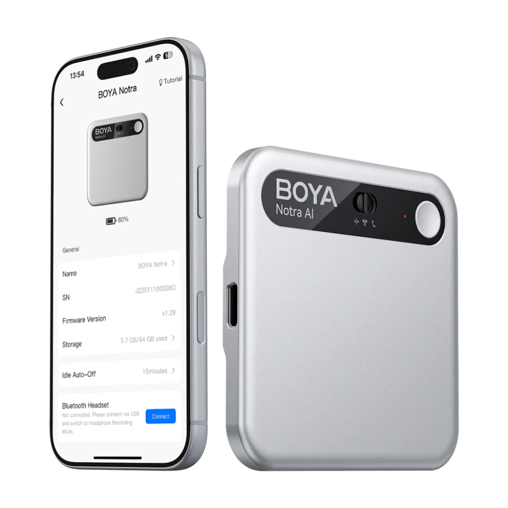 BOYA Notra Hangrögzítő AI Feliratozással - Ezüst A BOYA Notra egy modern hangrögzítő AI funkciókkal, amely megkönnyíti a mindennapi munkában az információk rögzítését és rendszerezését. Három rögzítési módot támogat – környezeti, telefonhívások, és Bluetooth –, így számos helyzetben használható. Az automatikus feliratozás több mint 140 nyelven és az intelligens összefoglalók lehetővé teszik az audio anyag gyorsabb feldolgozását. 64 GB beépített memória és akár 24 órás működési idő biztosítja az egész napos autonómiát. A kompakt, mágneses kialakítás növeli a használat kényelmét. Ez a megoldás megváltoztatja a hangjegyzetekkel való munkavégzést. Figyelem: A hangrögzítő egy dedikált alkalmazáson keresztül működik, amely egy alapvető ingyenes csomagot, valamint fizetős opciókat kínál, amelyek a készülék teljes funkcionalitását engedik kihasználni. ~ Műszaki adatok: