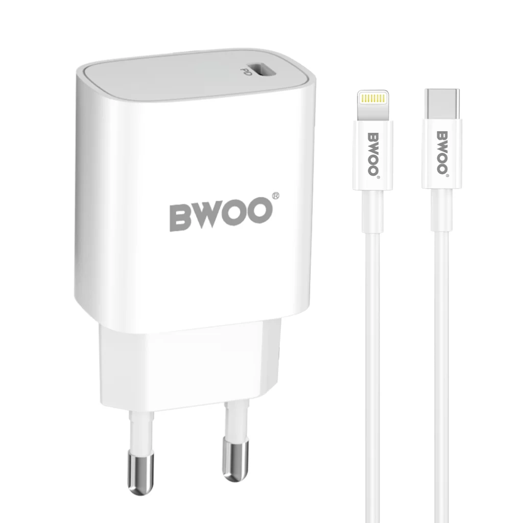 Ez a töltőkészlet egy 1 méteres Type-C - Lightning kábellel érkezik, amely maximum 20W teljesítményt támogat és stabil adat szinkronizálást. Ez a kábel lehetővé teszi, hogy ezt a töltőt iOS Lightning-eszközök töltésére használja.